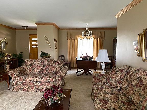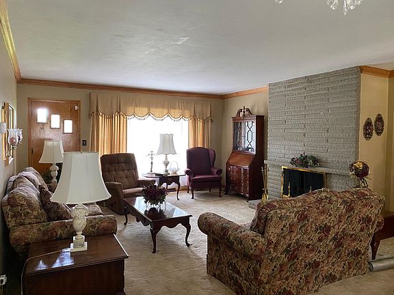 Lovely three bedroom, 1.5 bath brick ranch with large living room/dining room combination. Additional bedroom, full bath and laundry in basement, where you can enjoy the cool evenings around the gas log fireplace. Lots of room for entertaining. Hardwood under carpet upstairs. Electric logs in living room. Beautiful level backyard. Call today!