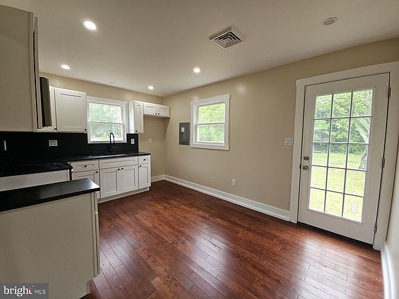 This renovated ranch style home boast stunning hardwood flooring through out. The spacious living room has four windows allowing natural lighting to flow through the room, new white shaker style kitchen cabinets with black granite countertops and backsplash, recessed lighting, sink under the window overlooking the side yard and the hallway bathroom featuring a laundry closet. The primary bedroom has an on suite bathroom with a tiled shower. There are 2 additional bedrooms. Located on a dead end street and close to the Bay area .