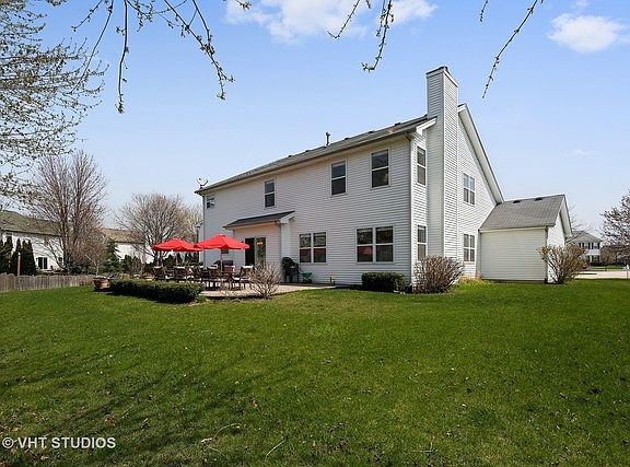 Space abounds in this lovely home on a quiet cul-de-sac! It boasts a 2-story foyer, 9-foot ceilings, wide hallways, generous room sizes and gleaming hardwood floors in the foyer, kitchen and family room. The kitchen features granite, an island with cook top, a double oven and closet pantry. From the eating area, a sliding glass door leads to the paver patio (patio furniture and grill included). 2 gas log fireplaces make the living rm and family rm extra cozy. There is also a 1st flr den and laundry rm. Upstairs, the enormous master suite includes a sitting area, tray ceiling and dual walk-in closets. The private bath has a whirlpool tub, separate shower and dual sinks. The full basement has a bathroom rough-in and has already been framed - the job of finishing it is half-done! Great location on a quiet cul-de-sac in Oswego School District 308 - Oswego East H.S. Immaculate and lovingly maintained; truly move-in ready. So much house for the price! Make it yours today!