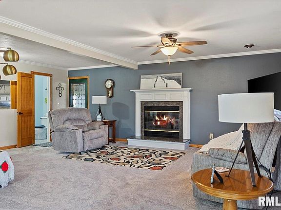 Venture out to Rochester's serene landscape & desirable school district & find this sprawling ranch on a 9.81-acre expanse offering a blend of modern comforts and farmhouse charm. With over 2600 finished square feet highlighted by wood beams, vaulted ceilings and authentic wood accents you can't help but notice the timeless elegance that's been so well maintained. Hosting 3 cozy bedrooms and 2.5 baths, including a master suite with a vast walk-in closet and private bath, this residence is thoughtfully designed for comfort. The heart of the home is the modern kitchen complete with central island, stainless appliances, tile backsplash & spacious pantry all tied together with trendy fixtures and a chic color scheme. Formal dining with a bay window promises fun family dinners while a generous breakfast nook is more casual & open to the family room & gorgeous wood ceiling. The formal living room boasts a contemporary fireplace and intricate original pocket doors. Significant perks include new siding in 2016, all flooring in Nov of '23 and an awesome 36x40 electrical equipped outbuilding with overhead door. Enjoy an extra large 2.5c garage & 2011 addition of extra space plus a furnace new in 2015, water heater in '22 & city water with softener included ensure worry-free comfort year round. A covered patio & firepit offer infinite outdoor relaxation plus these serene countryside views include an orchard of pecan, peach, cherry, pear, plum trees!! Rare opportunity in Rochester!