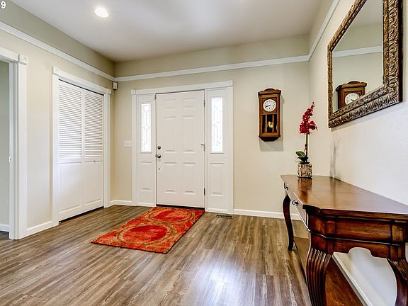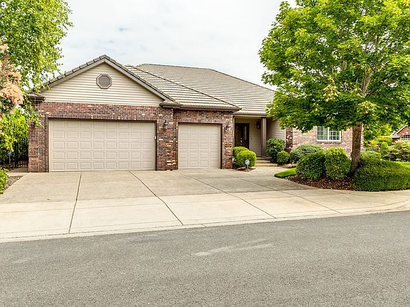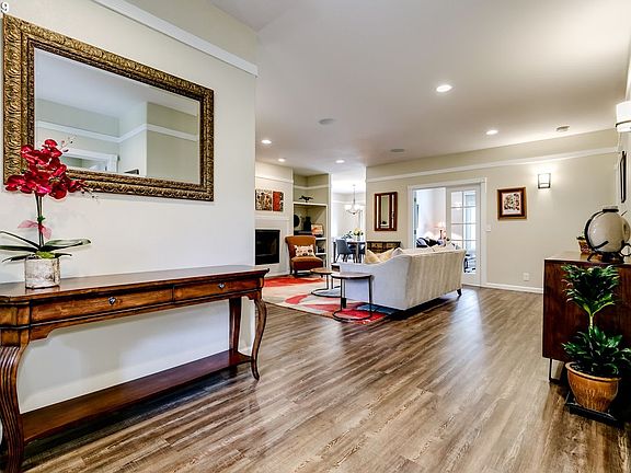 Incredible one level home in Valley River Village! Perfect for entertaining. Welcoming entryway leads to a spacious living room with built-ins & fireplace. Updated hardwood and quartz throughout. Convenient den/library is off the living room. Great separation of space between the master bedroom & 2 bedrooms + office . Kitchen has a light-filled eating area with access to the large deck. Perfectly located on a corner lot with large, secluded backyard. 3 car garage!