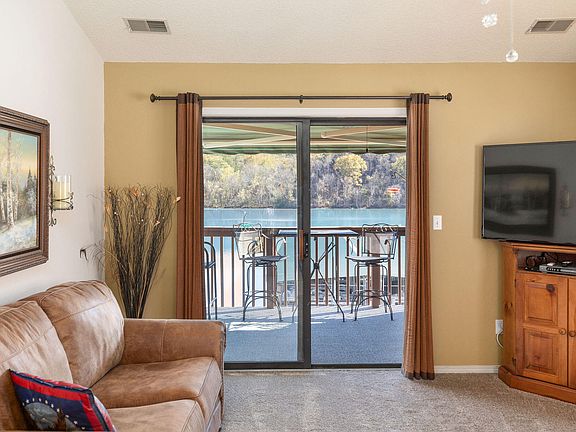 Fully Furnished, picturesque 2 bedroom 2 bath condo nestled on the peaceful Lake Taneycomo. The desirable, turn-key, upper-end level unit has an open, spacious floor plan with a beautiful lake view boasting throughout. ONLY ONE OWNER!! Large bedrooms, big walk-in closets, new carpet, and all appliances including a new dishwasher make this a gem!! Big bonus of updated handicap accessible bathrooms, quartz countertops, and vaulted ceilings!! BUT there's more- this lakefront condo boasts 2 boat slips- one with lift and a rare opportunity to own the sought after one-car garage. Plus the electric awning deck feature! The whole package included on this one!! The charming SilverCreek community amenities include a well maintained in-ground swimming pool, club house, an exercise room, cable & trash pick up. Beautiful WATERFRONT condo offering a quaint and tranquil setting at an affordable price!! Call today!!