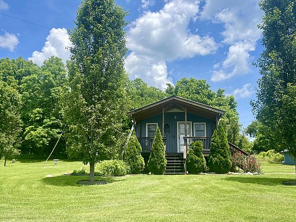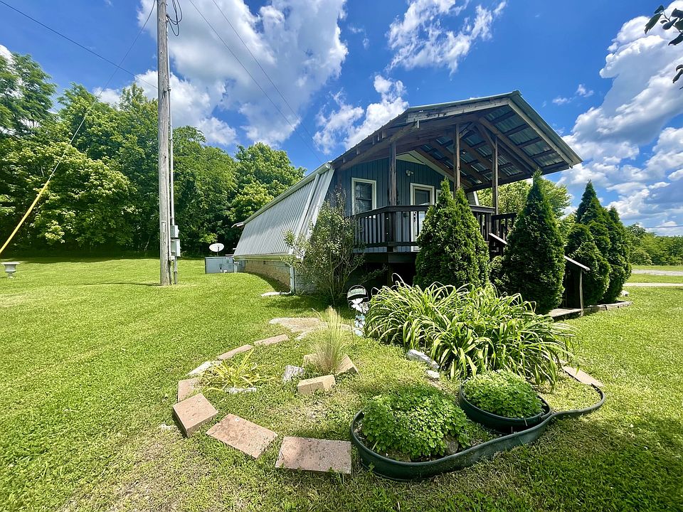 Rustic charm A-Frame home with metal roof and siding sitting on 1.27 acres. Lots of wildlife for the birdwatcher or the avid hunter! Both front porch and back porch are covered with metal roofing. HVAC, Two bedroom, One bath with additional toilet and sink in master bedroom. Laminate and tile flooring. Newly installed 1000 gallon septic tank and new field lines. All kitchen appliances stay: Refrigerator, Dishwasher, Stove and Microwave. No restrictions: bring ALL the farm animals! Includes a large storage building with garage door with electricity and lean to at right of building (back section 17x17, front section 16x30 for a total of 769 sq ft) plus detached enclosed on 3 sides garage/carport 9x18. Must see to appreciate! Country living only 30 minutes to Nashville!
