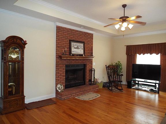 Gorgeous all brick rancher, upscale S/D. Open GR w/ trey ceiling, formal DR w/ trey ceiling. 9 foot ceilings, all wood flooring ( no carpet). Wood burning Fireplace in GR. Kitchen has high bar, breakfast room, SS appliances ( Bosch Dishwasher) Wood floors in all rooms, tile in baths + laundry. Huge master ( fireplace stays but needs work). Double sink vanities, whirlpool tub. Split BR plan. Home has office/4th BR, septic only approved for 3 BR. Nice large deck. Side load garage. Move-in Ready! Sq footage and measurements are approximate and buyer to verify.