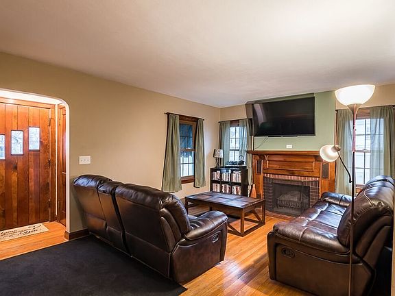 Charming 1 1/2 story Bungalow! This home features 4 bedrooms, wood burning fireplace in living room, attached garage, and hardwood flooring throughout! Numerous updates - furnace and A/C 2002, siding 2008, main bath 2014, windows 2014, kitchen 2016, and water lines 2015. Completely ready for new buyer - move in ready!