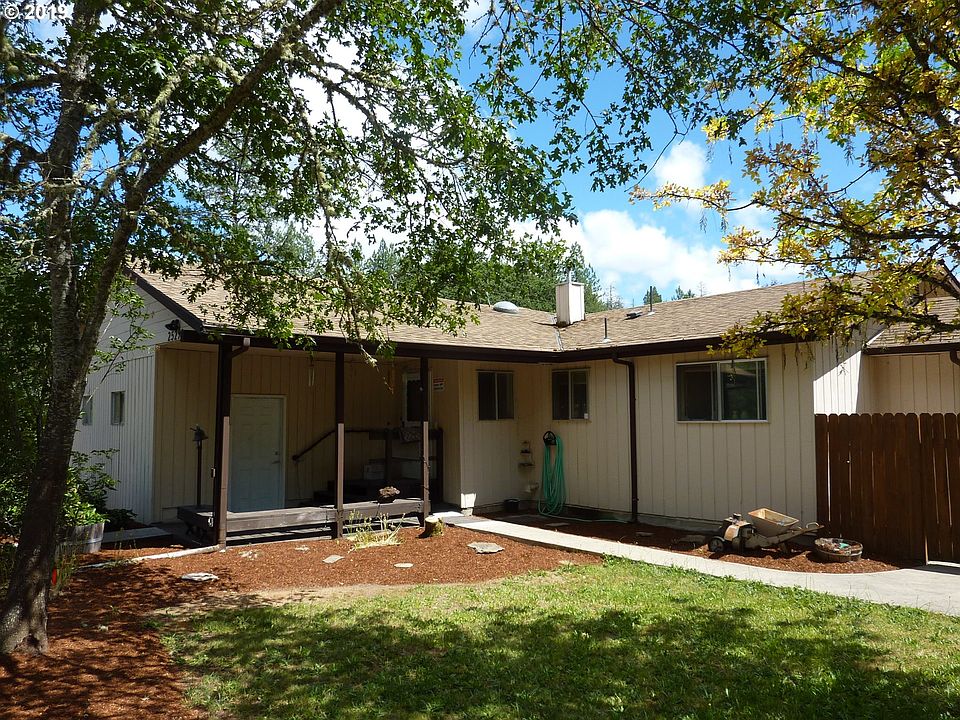 Motivated Seller! Investor alert! Duplex with additional income possibilities. Approximately 2/3 acre with additional electrical meter for separate RV parking with full hook-ups. On the bus line, with bus stop an end of driveway! Detached garage/shop for additional business? Each unit has a separate fenced private yard. Common area with fruit trees. Recently remodeled inside with 5 year new roof. Tons of parking. Appliances included.