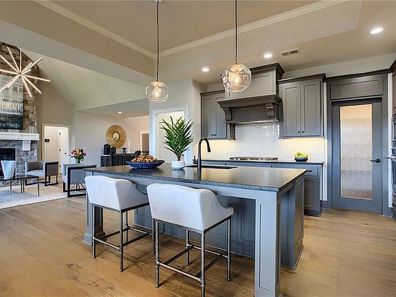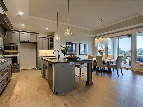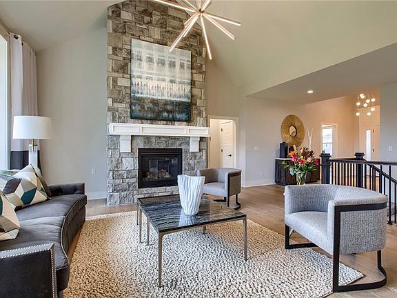 MOVE IN READY! This gorgeous Aspen II on a walkout lot offers centralized living and dining spaces, surrounded by an open kitchen with a beautiful white oak island, laundry facilities, and mudroom. The floor to ceiling, stone fireplace creates a warm and inviting space to host. The spacious primary suite on the main level allows optional bathroom/closet layouts, while flex space at the front can be converted into a study or guest bedroom. The lower level is home to a recreation area—complete with a bar and patio access—and two bedrooms that share a bathroom, and unfinished storage space. You will be able to relax outdoors on your composite, covered deck with a serene view of the lake.