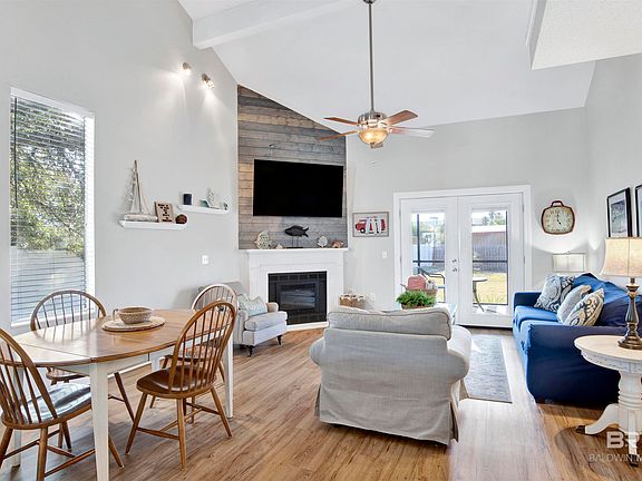 This 3 bedroom 2 bath condo is located in the heart of Orange Beach and has been incredibly well maintained. Gorgeous, updated, fully furnished. Unit features brand new stainless appliances and new HVAC. DEEDED BEACH ACCESS! Amazing lake gated community. This unit offers an open and airy floor plan with primary bedroom on the main level. Updated vanities, lighting, kitchen cabinets and quartz countertops! This unit also comes with a one car garage with great storage. Enjoy sitting on the screened in back porch. Complex has swimming pool, tennis courts and clubhouse with full kitchen. Clubhouse also has small workout room with steam/sauna. Ride your golf cart to all the restaurants and shopping close by or park at the deeded beach access parking. Buyer to verify all information during due diligence.