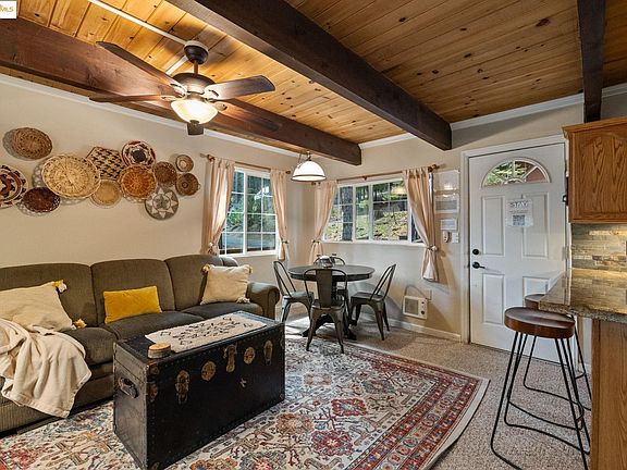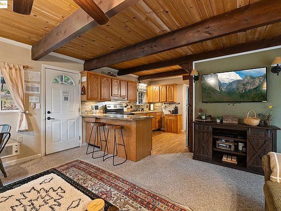 TURNKEY CABIN in the desirable gated community of Sierra Park. This charming home has been the perfect go to spot for AIRBNB guests as well as the current owner's year-round getaway. Access here is easy with level parking in front and no steps to the main entry. The interior features exposed beam ceilings, a cozy fireplace and open floor plan. The kitchen is improved with granite counter tops, breakfast bar, updated cabinets and a dining room off the side. Finishing the main level is a bedroom and full bathroom with a custom stall shower. UPSTAIRS are two bedrooms with one being a generous sized open loft and the other enclosed. The tongue and groove ceilings create a true cabin ambiance throughout the home. Outside you can relax on the back deck enjoying the forested view or hop on the trails over the seasonal stream to recreate. BONUS GUEST QUARTERS or hobby room can be found in the detached building with a private deck and loft within. Storage and the laundry room are located in the partially finished basement. MOST ALL FURNISHINGS will remain. As a resident in Sierra Park you can enjoy the lake, playground, baseball field and plowed roads in the winter. Within 20 minutes you can be to Dodge Ridge Ski Resort, Pinecrest Lake and the many outdoor trails offered in the Foothills.