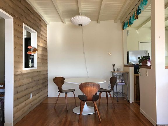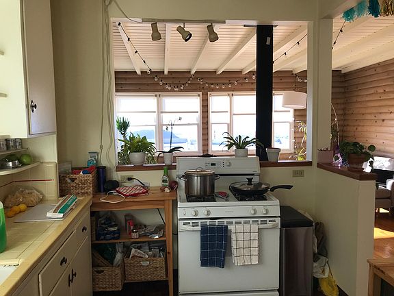 Stylish, spacious 2 bed 1 bath cottage with stunning views of SF and the golden gate bridge. The home is a mid century modern style open floor plan with a large living room. It's in a safe and quiet neighborhood in Kensington and has onsite laundry and a dishwasher. It's close to Tilden Park, is a 9 min walk to the 7 bus stop on the Arlington, or a 13 min drive to the UC Berkeley campus/Downtown Berkeley. Nearby schools include Kensington Elementary School, Growing Light Montessori School of Kensington and St. Jerome Catholic Elementary School. The closest grocery stores are Young's Market, Colusa Market and Andronico's Market. Nearby coffee shops include Raxakoul Coffee and Cheese Market. Master Bedroom: Large 10.3' x 19' carpeted bedroom with generous 5.6' x 8.2' walk-in closet. 2nd Bedroom: 10' 5" x 11' 5" with hardwood floors and a closet. It easily fits a double bed and desk. Can also be converted into a home office - ideal space for working from home. Kitchen: Gas Range oven, microwave, new dishwasher and new refrigerator Laundry room: Contains washer and dryer and storage shelves Details: -Home is available starting October 3rd -1 year lease -$2500 security deposit -$3000 per month + utilities -Street parking -No pets -No smoking We're giving house tours on Saturday 10/8 from 10am-12pm. If you submit an application before that time we'll consider making an earlier decision. The house is a large, private in-law cottage behind the larger house. To access it, go down the stairs/path on the right side of the larger house. 1 year lease. Water is included, renter is responsible for gas and electric.