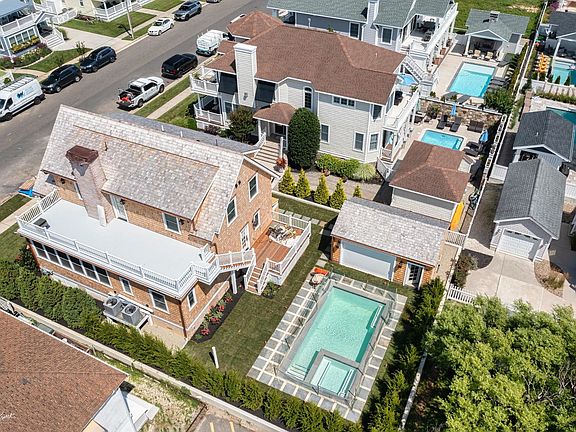 Welcome to Nantucket meets Stone Harbor! The recently completed beach cottage at 253 107th Street is the perfect seashore escape, filled with modern amenities and classic finishes. This five bedroom, four and a half bath home, yet with an open floor plan, fits the need of any shore family. Wrapped in Alaskan Cedar with a 50 year warranty, this move-in ready home will wow you in every aspect. Sitting on an oversized 60*110 lot on a quiet street, this cottage immediately catches the eye with the front yard landscaping and beautiful curb appeal. Copper gutters and downspouts, with hand picked awnings to match the exterior aesthetic, combine for a welcoming front door experience. As you walk inside the first you'll notice are the 10 inch wide pine floors that were reclaimed from an 1895 Cocoa Factory in Camden, NJ. The show stopper of the entry way is the double sided glass fireplace that is seen in both the sunroom and living room. Moving further into the home, you reach the custom designed kitchen. Coming equipped with a True Glass Fridge, 36' Wolf stove, Viking dishwasher, 48' Sub Zero wine cooler with two zones. Custom cabinetry and Calcutta Marble countertops throughout the kitchen are covered with protective coating tuff skin and were selected for their durability and easy maintenance. After marveling over the large island you will see a chef's pantry with ample storage space and microwave. Down the first floor hallway is bedroom #1 with a walk-in closet and ancillary closet space as well. This bedroom has an en-suite bathroom with beautiful shiplap bathroom walls and water work fixture lights. Further down this hall is a laundry room adjacent to the exit to the magnificent backyard pool, hot tub, and oversized cabana. A full mudroom allows for easy entrance into the house from the pool and / or beach. Custom stone slabs around the pool offer a hotel style backyard. A large deck off the first floor leads you to an even bigger deck from the second floor which provides striking sunsets and bay views. The second floor features four bedrooms with three full baths, and another washer and dryer. Each bathroom comes with custom tile and shiplap, with one cast iron tub for any kids staying over! With Sonos speakers and multiple built-in televisions, this house looks like the perfect quiet cottage but could be the ultimate entertainment cottage. 107th Street is a wide and quiet street providing easy walks to downtown, the beach, bay, or bird sanctuary. Come check out this cottage before it's too late!