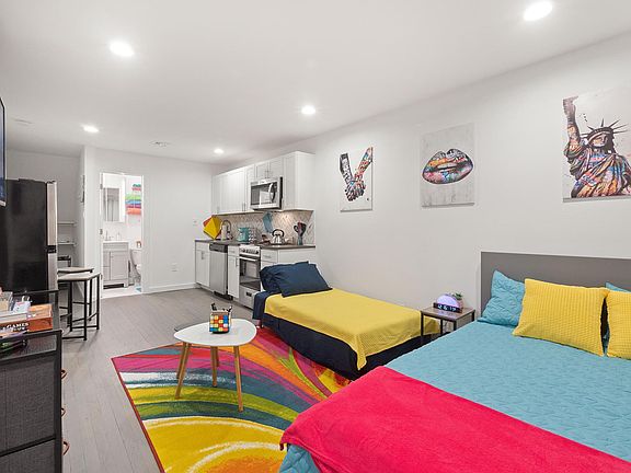 Could be rented furnished or furniture for sale. Lease term and start date is flexible. This bright & cozy studio is close to everything, making it easy to plan your stay. A few short blocks away from the PATH, 1 block from Hoboken University Medical Center, and so many stores and restaurants near by. Sleeping arrangements: one full size bed, one futon couch which transforms into a single bed, and one full size air mattress if needed. It has everything you need in it's full kitchen including a dishwasher, full oven w/ gas stove, microwave, Keurig machine, utensils, pots & pans. This ground floor apartment is located on the corner or 3rd Street and Park Avenue near parks, great restaurants, bars, shopping and a short walk to the PATH station where you can take a train or ferry to NYC or also take the light rail to Bayonne, Jersey City, Weehawken, Union City, or North Bergen. One World Trade Center is 4.4 miles from the apartment, while Penn Station is 4.4 miles from the property. The nearest airport is Newark Liberty International Airport, 9.3 miles from Bright & Cozy Studio Near PATH. Broker fee equal to one months rent. NO PETS Could be rented furnished or furniture for sale. Lease term and start date is flexible. Broker fee equal to one months rent. NO PETS