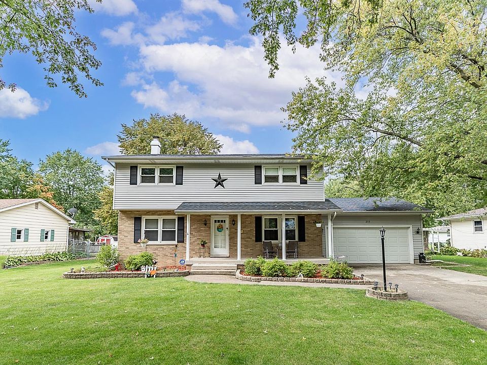 This is a beautiful, four or five bedroom two-story home in Lowell. The covered front porch has room for sitting and relaxing. Large fully fenced backyard with multi level deck above ground heated pool, storage shed and lots of area for relaxing and enjoying being outdoors. There are two extra large bedrooms and two large bedrooms (hardwood underneath under the carpet) upstairs a bedroom/office/den on the main level. The large kitchen has been updated. Includes a glass and tile backsplash. A formal dining and living room (hardwood under carpet) finish the main level. The full bathroom has been completely renovated with a comfort height cabinet. Newer appliances. The lower level is mostly finished with new carpeting in a fireplace in the gathering space. There is a separate laundry room and storage. Two car attached garage. Schedule your showing today!