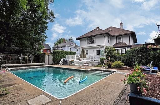 Located in the deep west side, you'll find this impeccably maintained Tudor style Colonial home. Prepare to be impressed from every angle. The super sized kitchen with center island has endless cabinets and counter space. All rooms are of generous size with loads of storage. The first level includes a fire placed family room, a sun room, and a lovely formal living room, now serving as an in-home office. All with french doors. A double or Butler stairway meanders to the second living level where 4 BRs have hardwoods under all carpets. Two additional rooms on the third level. A partially finished basement, not included in the GLA, that was formerly used as a daycare. A must see. Exit the kitchen to a deck that encompasses a 16'x32' I/G pool. The perfect home for your growing family.