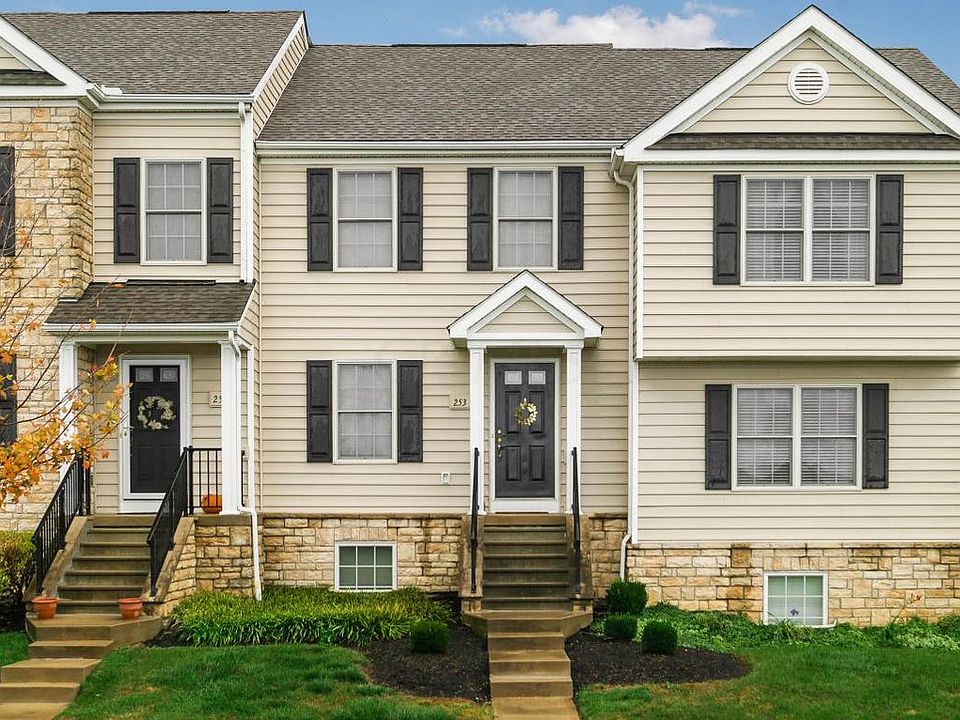 Beautiful condo featuring striking hardwood floors, a gorgeous kitchen w/ bar & island, stainless steel appliances, and custom pendant lighting that leads to nice deck & 2-car garage. 2 bedrooms w/ private baths, as well as vaulted ceilings & walk-in closets. 2nd floor laundry too! Huge lower level would make excellent family room, rec room or possibly 3rd bedroom option. DON'T MISS OUT!!