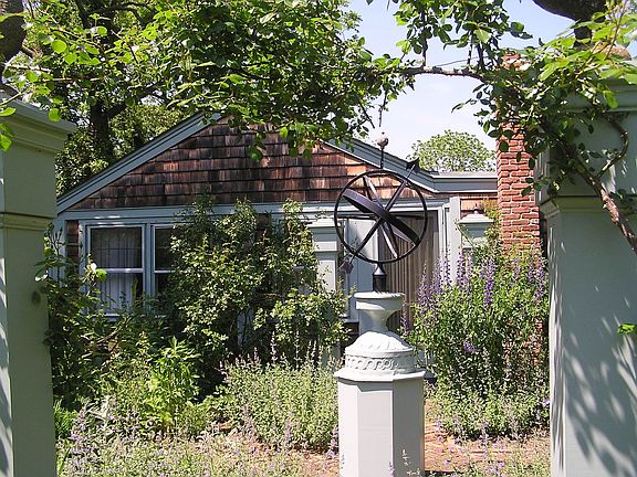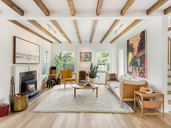 Stunning 1830s colonial situated in bucolic Brookhaven Hamlet, only a short distance to downtown Bellport Village. Completely renovated and designed by renowned architect Jeremy Linzee, the thoughtful yet modern renovation honors the integrity of this historic home. The home's pristine volumes and open concept layout are perfect for entertaining. The first level features a spacious living area with a wood-burning fireplace and original exposed beams, contributing to the home's overall character and warmth. The luxuriously-appointed GD Arredamenti kitchen boasts a large stone island with seating and chef's quality appliances. Adjacent is a dining area with a raised-hearth wood-burning fireplace with views of outdoor patio and gardens. A large full bathroom, featuring a spa-like deep soaking tub, completes the first level. The second floor is accessed by front and rear stairs. The expansive primary en-suite bedroom features a wood-burning fireplace, a private balcony overlooking gardens and pool and a James Turrell-inspired shower/steam room with sweeping skylight above. There is also a guest en-suite and two additional guest bedrooms and a full bathroom. Set on nearly an acre of land, the property includes an 800 sq ft 1 bedroom, 1 bath, outbuilding with kitchen and solarium, ideal for workspace or guests. The approved, under construction 45' x 15' gunite pool will be set back on the property's meadow in total privacy. Additional features include a 1-car garage with Tesla electric charging station, outbuilding storage shed, and a full unfinished basement. The house sits in the Brookhaven Hamlet historic district offering pastoral nature trails, river boardwalk, farms/farm stands, & boat dockage at the Squassux Landing marina.