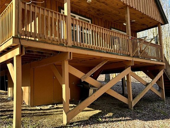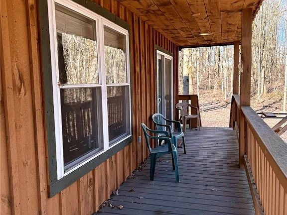 Are you looking for a private getaway, great hunting land, no neighbors in sight? This could be just the property you're looking for with over 15 acres of secluded land! Walk into a newly built mudroom entrance with plenty of space to create more storage area if needed. Open concept first floor kitchen, living, dining with great natural light. A full bathroom is also located on the first floor. The sliding doors in the living room open up to a fantastic covered wrap-around porch with great wooded views and the opportunity to spot all kinds of local wildlife! A new pellet stove will keep your new home cozy as well as a propane Rinnai Heating System if needed or to use when you're not there. Upstairs you will find a huge loft space with two separate sleeping areas. There is a generator hook up incase it is needed. If you're looking to use this as a hunting retreat, there is plenty of room for you and all of your hunting buddies! An abundance of hunting and fishing opportunities with Balsam Pond nearby, as well has hundreds of stateland acreage. Don't miss out on this one!
