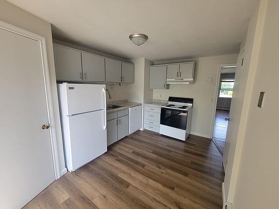 Two bedroom, one bathroom first floor unit. On site shared laundry. Newly renovated. One year lease. Heat and hot water included. Tenant responsible for all other utilities. Off street on site parking. Storage unit provided with lease. All adults must apply and be on lease. No smoking.