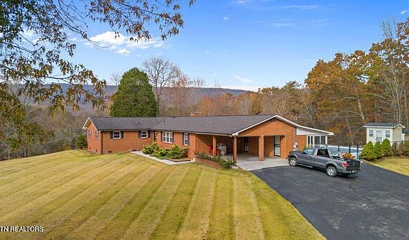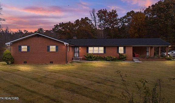 As you step inside of this traditional rancher you are met with hardwood floors throughout most of the home. The combined spacious kitchen and family room give lots of space to gather, and the fireplace with its wood burning stove insert to create those postcard moments. The separate living room and dining room give you tons of additional space to entertain. The primary bedroom and bathroom are both spacious, and the primary bathroom has a separate closet / dressing area with a built in vanity. There are three additional bedrooms, with two of the rooms having built in cabinets and shelving giving these rooms a dual use for a library, office, and so much more! The hall bathroom has beautiful retro fixtures. Off of the kitchen is a spacious laundryroom, separate lavitory, and separate bath area complete with a walk-in jetted tub. Off of the back of the home is huge climate controlled sun room with two individual heat / air units. The sun room joins to the large fenced pool deck and inground pool with a diving board. There are several additional outbuildings including an outdoor dressing area complete with its own full bath, giving you a very convenient 4th bathroom. This property has tons of paved additional parking. Located just outside of the city limits, and very close to the marina and tom Fuller park for easy access to Watts bar Lake.