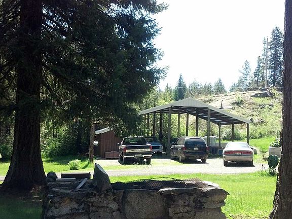 This is an incredibly private property, with an absolutely charming cabin/ home, tucked behind the Bible camp, 2.75 acres with a paved driveway, 2 (easy to make 3 bedrooms) bedroom, 2.5 bath, cabin, 1800 sq. ft. landscaped, detached garage shop, storage, RV parking 3 bay carport. You will love the easy access and the Peace & quiet.