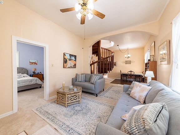 Beautiful 1900's home w/3 BD, 2 BTH & 1,305 sq. ft. Within walking distance to downtown Cottage Grove. Recently updated with new carpet & interior paint making it light, bright and full of charm. Spacious kitchen, utility rm, mud rm & separate dining area. Slider to back deck where you can enjoy views of the Coastal fork of the Willamette flowing by. Extra-long driveway allows for generous parking, carport w/tons of storage & tool shed.