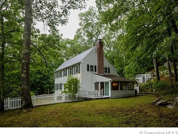 Charming, well cared for home, move-in ready! Light floods through the family room bay window. Large living area. Eat-in kitchen. Sunny, bright bedrooms. Wide board pine flooring throughout. Enjoy the spacious screen porch with ceiling fan, open to a sun porch. Additional space in lower level for playroom, den, workshop. This home backs up to woods, with dramatic rock outcroppings. A large deck, built into the hill behind the house, overlooks the property. A side yard gives room for play. The 2+ acres, with the home sited above the road, provide a wonderful sense of privacy. Interior spaces open to the beauty of the natural surrounds. Convenient location! 4 miles to the center of Madison and shore. Hammonasset and Chatfield Hollow State Parks within reach. Easy access to commuting routes. Enjoy your ride home along scenic Chestnut Hill Road.