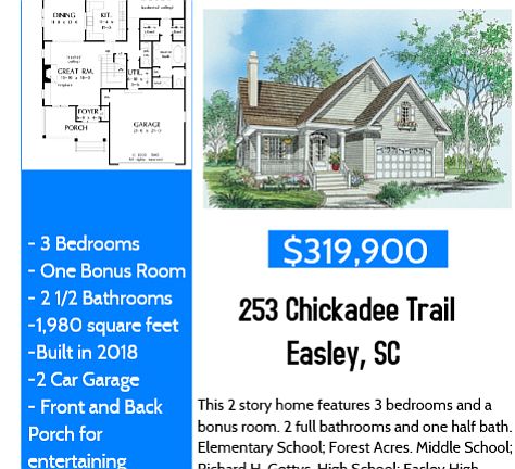 Beutiful new build in highly desirable Audubon Acres Sub-Div. 3br/2.5 baths, master is on the main with full bath, double sinks, separate tile shower with seat, his and her closets. Upstairs are 2 large bedrooms with walk-in closets and a bonus. Beautiful great room and formal dining room. Kitchen has stainless appliances and a breakfast room. Partially covered deck on back and rocking chair front porch. Walk-in crawl space. The sub-division has walking paths and a path to Smithfield Golf Course. Golf carts are welcome...