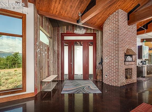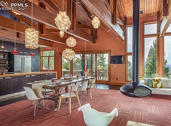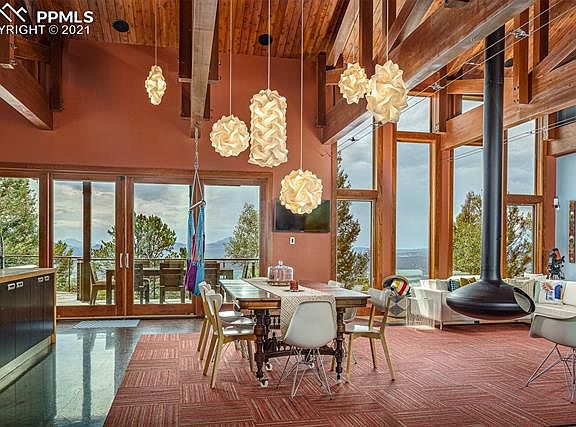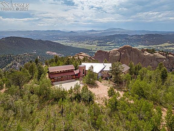 This one of a kind mid-century modern, meets rustic majestic mountain home, with a hint of Luxury, sits on the most breathtaking 35 acres you could ever imagine. A true 'take your breath away' experience right down to the last detail. Marvel at the modern wood burning fire place that spins all the way around so you can enjoy a rotating 360 degree view from every vantage point in the home. The Gourmet Chef's Kitchen with a brick oven, breakfast bar, prep area for the 'sous chef' and high end stainless appliances will make you want to create a Michelin worthy meal every night. Architectural design elements are abound in this home with the 'silo style' round library, locally sourced tree wall treatment, modern lighting and repurposed barn wood defining the garage exterior. The Master Retreat has its own gas fire place and full spa bathroom with soaking tub and a walk in shower so big you can bring a book and spend the day! The views from the Master can only be described as a 'Design Coup!' Downstairs you have even more room to play with a spacious family/rec room, full 'Drive in Movie' themed theatre room, an over sized bedroom, full bath and a Bunk Room that was envisioned to sleep over 10 people so you will never run short on space for visiting friends and family. The Bunk Room bath has a 3 fixture sink, bathroom closet, and shower w/ a private changing room. You may want to keep area this a secret so your guests don't become permanent residents! Plus, there are TWO, finished BONUS rooms over the 3 car garage that work perfectly as a home office, home school room, craft room or even as additional spare bedrooms when you have extra visitors! This home is the perfect vacation home or full time family home. And I'm sure it is no surprise it comes complete with security system, 1/3 time solar panels and a home control system. Every window and deck showcases gorgeous views of rock formations, mountains, valleys and skyline. This is your Colorado 'Dream Come True' Home!
