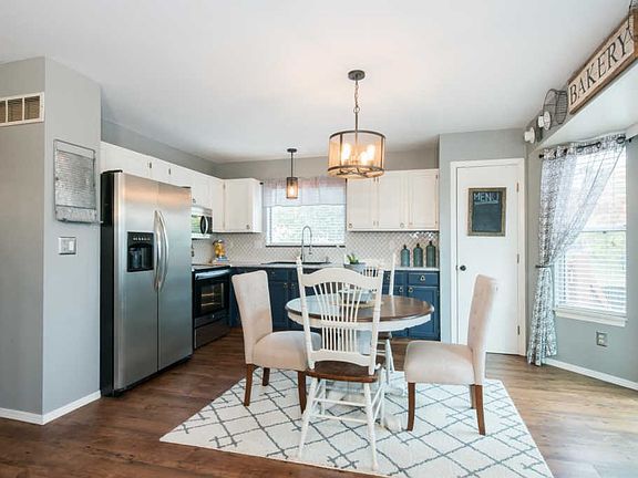 Adorable farmhouse chic 2-story with lots of recent updates! The open main floor living room features a cozy white-washed fireplace & wood mantle which flows into a beautiful updated kitchen with newer stainless steel appliances, gorgeous tile backsplash, double composite sink w/pull-down faucet, fabulous Edison light fixtures, 2-tone painted cabinets & attractive laminate floors. A sliding door opens to a deck perfect for entertaining. Handy main floor powder room with a lovely wood feature wall. The master bedroom has vaulted ceilings with skylights for great natural light & 2 beautiful family bedrooms & a full bath down the hall. Finished lower level walk-out has a family room for valuable separate living space & a roughed-in bath. Fenced, level back yard. Neighborhood pool down the street. Excellent location near MO-364 for quick commutes. Close to YMCA, Renaud Spirit Center, great shopping & restaurants. Ft Zumwalt (West High) Schools. You MUST see this one inside! Do it today!