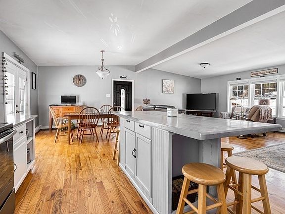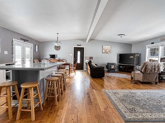 This move in ready, three bedroom ranch is nestled on 8.78 acres with picturesque views! Walk in to an open floor plan that includes a spacious family room, oak floors and pellet stove. The updated kitchen (APO'14) offers granite countertops, newer appliances (APO'18), an oversized painted cherry island and a dining room with French doors that open to a composite deck overlooking the property. Down the hallway you will find 3 bright, spacious bedrooms and 2 updated full bathrooms- one with a walk-in shower (APO'16) and the other with a tiled tub surround (APO'20). The finished walk out basement has high ceilings and endless possibilities. This home has all new windows, exterior doors, cedar siding (APO'17) & a 20x40 barn with electricity. Enjoy the fruit trees /bushes, raised garden beds and professional landscaped grounds that is convenient to nearby amenities/highways for an easy commute-10 min to I-91 & Shelburne Falls, 45 min to Mt. Snow! You won't want to miss this one!
