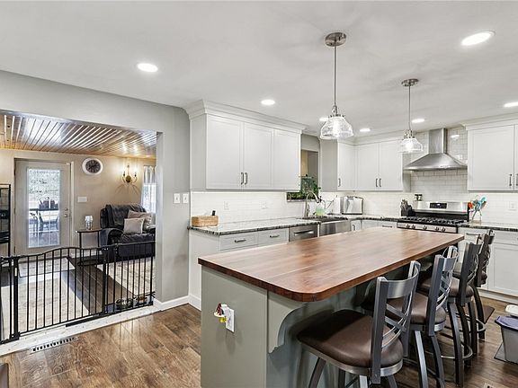 Classic yet Spectacular!!! 3 bedrooms, 2 full baths, New Roof, Custom Caruso Kitchen with "one-of-a-kind" Granite counter (check out the grain!), huge island topped with a magnificent Texas Wild Cherry "butcher block style" countertop, and Bosch Stainless Steel Appliances you would expect! 1st floor family room area, plus a 1st level bumped-out living room, and a lower level family room area also which includes a wood-burning fireplace! Concrete driveway, oversized 2-car garage, rear patio area with a Pagoda covered 7-person hot tub! Note: The Lot fronts or backs to the upper street (Monongahela Blvd.) and may be able to be used for a future garage or play area! Many updates to enjoy during your visit!