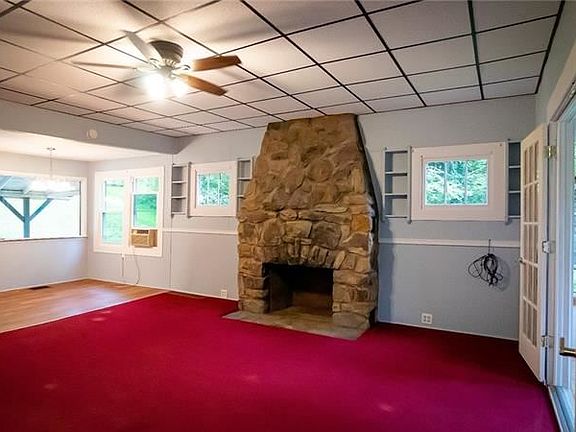 Quaint and cozy this home rests on Slippery Rock Creek and contains 100 foot of frontage on the creek. This home boast a newer galley style kitchen, and dining area w/laminet floors. Living room w/stone log burning fireplace, family /4 season room overlooking the creek. Updated bath, two bedrooms with a loft. there is also an old dock and boat housed on the property. Additional lot across the road for party or recreation area.