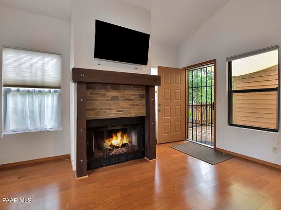 Turnkey townhome-style condo and getaway in the pines! 2 master suites/2 full baths1 on each level) with an open loft, ample storage space. New HVAC system installed 3/21 and new 50 gal water heater 2019. This 1404 SF home is close to Thumb butte and just blocks from downtown Prescott. Outdoor living. Lots of upgrades! Newer stainless kitchen appliances with beautiful granite countertops. Newer hardwood flooring and neutral paint throughout, updated plumbing and electrical fixtures. Custom designed gas fireplace. . This unit offers a beautiful forest setting without any traffic noise. HOA covers all exterior maintenance. Enjoy low cost home insurance, currently $655 / year