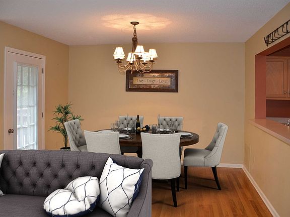 FALL in Love with this Sunny & Bright Town House in sought after Elmcrest! This unit boasts newly finished hardwood floors, walk-out basement, ample closet space, and the privacy of a wooded backyard. The main floor features Entry Area w/Coat Closet, Eat-In Kitchen w/ Pantry, Light filled Living Room and Dining Area with door out to deck where you can barbeque or simply relax and enjoy the views of the beautiful fall foliage. Unwind in your Master Bedroom with walk-in closet or sit down at your computer in the adjacent loft area that can easily be converted to a private office or third bedroom. Dual entry full bathroom with linen closet and additional shower completes the second floor. the Lower level features generous size bedroom, closets, laundry/storage room & sliding glass doors to secluded patio area. Park in garage, driveway, or common areas. HOA charges include pool,gazebo,snow removal,lawn care & trash removal. Close proximity to schools, highways and shops.