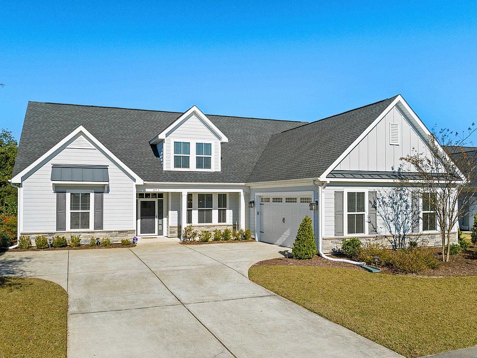Step into a world of refined elegance at 253 Deep Blue Drive, a semi-custom residence located in the distinguished Brighton Lakes community of Carolina Forest. This 4-bedroom, 3-bathroom home offers a thoughtfully designed layout that spans over 2,900 sq. ft., providing an open and airy feel ideal for both entertaining and daily comfort. The first floor is a testament to modern design, featuring a welcoming foyer that leads to a versatile flex space, which can serve as a formal dining room or whatever your lifestyle demands. The heart of the home is the great room – an expansive and inviting area that flows seamlessly into the casual dining space and out onto the screened porch, perfect for enjoying Myrtle Beach's temperate climate. Culinary enthusiasts will delight in the well-appointed kitchen, boasting a functional working island, gas range, and sophisticated under-cabinet lighting. The first-floor master suite is a luxurious retreat, complete with a walk-in closet, a master bath with a tiled shower, soaking tub, and dual vanities. As you ascend to the second floor, the home continues to impress with a spacious loft that serves as a central hub for the additional bedrooms. Each bedroom, including the generously sized fourth bedroom, offers ample space and privacy, complemented by convenient access to the shared bathroom and linen storage. Outdoor living is accentuated with a covered patio set against the backdrop of a tranquil natural landscape, complete with a fenced yard for privacy and peace of mind. Within the gated confines of Brighton Lakes, residents enjoy access to an array of amenities such as a resort-style pool, clubhouse, fitness room, and sun deck, all designed to enhance your coastal lifestyle. 253 Deep Blue Drive is more than a home – it's a statement of luxury and comfort, awaiting your arrival in Myrtle Beach.