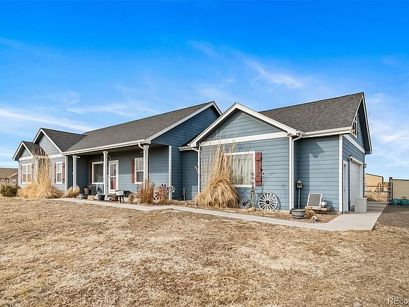 Welcome home to this beautiful ranch-style home in the peaceful community of Ranch Wood at Bijou Creek, located at the end of a cul-de-sac in the quiet town of Byers. Set on over 2 acres of land, this home offers a spacious and private lot, making it the perfect place to call home. This property features a main floor master suite with a 5-piece bath and laundry with mudroom for ultimate convenience, while the bonus room above the garage adds extra living space; ideal for an additional bedroom, office space or kids' play area. Featuring beautiful finishes throughout, including a spacious kitchen with knotty alder cabinetry, a walk-in pantry, stainless-steel appliances, and gorgeous beaming hardwood floors. The finished basement provides two more bedrooms, a flex space for working out or an extra spot for the perfect movie night with family. The oversized attached garage offers plenty of space for your vehicles and storage, and if that's not enough, the detached garage offers even more space for the tractor and lawn/gardening tools. Step outside and enjoy the fresh air on your front covered front patio or in your backyard oasis with the large patio, ideal for hosting summer BBQs and gatherings with family and friends. Located just 45 minutes from Denver via I-70, Byers offers an easy commute to the city, and you can even walk to school. Underground utilities include city water/sewer and natural gas. This home has it all—schedule your showing today!