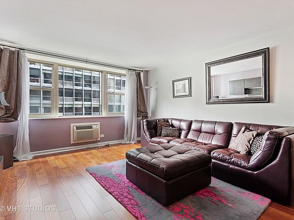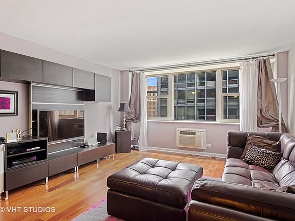 Superb area in the heart of Chicago. This updated, end-unit, 1 bed condo has it all. Step into the welcoming foyer that has 2 closets (1walk-in). Fresh, custom paint & gorgeous hardwood floors throughout whole condo. Great layout has a large, open living room with a dining area & kitchen also open to this room. Ample storage (condo has 6 closets). Lots of windows for plenty of sunlight & a sliver view of Lake Michigan! Large bedroom with walk-in closet plus 2 more closets. Amazing 360 degree views of city & Lake from rooftop deck. The renovated building hallways have a very stylish look of an upscale hotel. Unbeatable Streeterville neighborhood where you are steps from Lake Michigan, beaches, the John Hancock & the Magnificent Mile. Close to parks, Northwestern Hospital & school. Best of all, world premiere shopping, restaurants & night life. Very convenient to everything that makes this a world class city. Heated indoor parking is ONLY $200/mo. Guest parking available too.