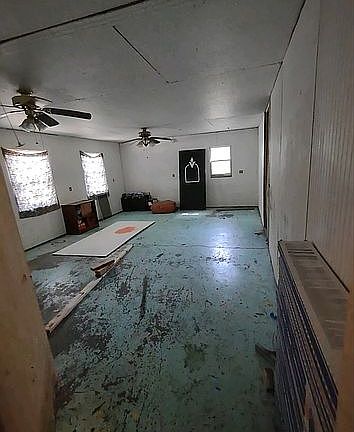 HOME with 2 car garage & 2 LOTS. This is residential/commercial property. House needs lots of work. Great for investors. The extra lot had a home on it years back. It is a 2 bedroom 2 car garage. I had it sold on contract and they partitioned part of the garage for a 3rd bedroom. The buyers abandoned the property and moved away. Most flooring is ripped up. There is enough new flooring to install. Ceiling fans in living room and bedrooms. I had the roof checked and decking is good no leaks but needs new shingles. Forced air gas heater and gas water heater all work. Has utility room with washer dryer hook up. Needs interior doors, front door and garage door replaced. Has vinyl siding and needs power washed. House is a fixer upper.