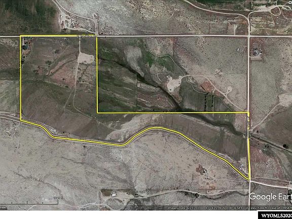Ideal hobby farm on 80+ acres less than 24 miles from Riverton. 62.3 irrigated acres via Midvale Irrigation used as grazed pasture and 12 month live water to help support a small livestock operation. The home is a 2 bedroom 1 ½ bath ranch style dwelling with forced air propane, wood stove and/or fireplace for heat. Dining area, galley kitchen and main bedroom are all spacious. Ovintiv surface lease.