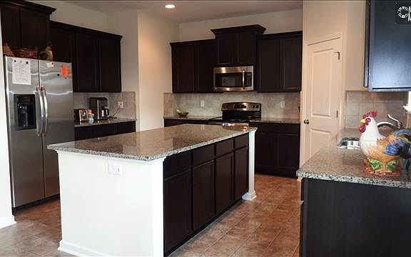 Craftsman w/stone& truss accents. Living areas defined by columns and arches-"open concept." Easy to convert flex space near front door into an office, etc! Eat-in kitchen w/tall, impressive espresso cabinetry, granite, tile backsplash, pantry, stainless, and vast island brimming with storage and work space. Keeping room for casual dining or hanging out while keeping the cook company! All this flows seamlessly into the corner Great Room w/FP. Master has 2 WIC's (hers is HUGE), sitting area, granite c'top, tray clg, garden tub/sep shower. 5th BR can be bonus room w/adjacent WIC. Fenced yard with garden spots, 12' gate. Community pool! Have plans for covered back patio; will install below cost with acceptable offer! See photos for rendering.