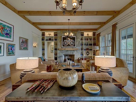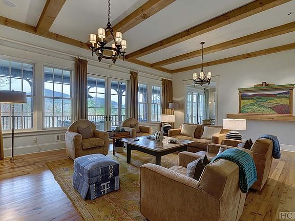 Incredible Mountaintop Lodge Just Reduced! Built on a double cul-de-sac lot, this 3-story, 5 BR, 4 BA, 2 half BA mountain retreat is one of the most private in prestigious Mountaintop Golf & Lake Club. Proximity to a designated wilderness area ensures that a nearby babbling stream can be heard from every large screened deck. Features include custom built-ins, directional art lighting, naturally finished Australian Cypress floors throughout, custom window treatments, fireplaces with propane gas, and a custom whole-house music system. The Bulthaup-designed kitchen demonstrates an updated sleek and clean design paired with warm beautiful natural ash veneer. To finish the look; heated limestone floors, butcher block counter tops, and a built-in breakfast table. Upscale appliances and extras include a Miele dishwasher and oven, Sub-zero refrigerator, and a Wolfe cooktop and microwave. The Dining + Great Rooms open onto a screened porch. Antique beams on ceiling and mantle compliment the custom cabinetry, slate floor and fireplace. This home also has a bar and wine room befitting a home designed for holiday entertaining and large get-togethers. 3 bedrooms open to large screened porches with beautiful mountain views and private sitting areas. On the lower level, walk-in closets and en-suite baths give two guest rooms a sense of complete privacy. A spacious master bedroom is conveniently located on the main floor and stays cozy with heated floors and heated towel bars in the oversized bathroom. Upstairs bedrooms currently serve as an art studio and den. This home will be sold with an optional membership at Mountaintop Golf and Lake Club upon application and acceptance. The opportunity to make this your home in one of Western Carolina's most sought-after private communities won't last long. Call today for a personal tour of this exceptional home and neighborhood.