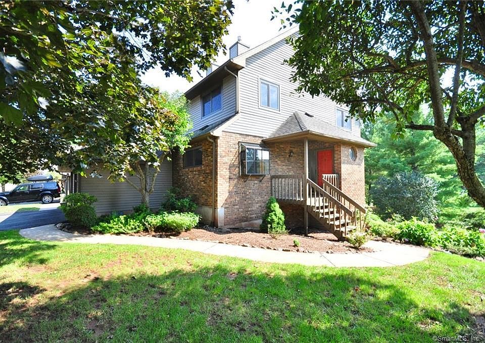 Don't miss this immaculate and meticulously maintained End Unit with tons of privacy across from community pool. Beautiful Maintenance Free and Professionally Landscaped Ashford Unit! Large open kitchen with eat in space, pantry and access to attached garage. Bright and sunny living room with new carpet and sliders to private deck looking out on open space and woods. Upper level has two ample sized bedrooms each with their own full bath and walk in closet. Upper level Laundry. Stairs and Landing have new carpet. Partially finished lower level great for home office of just hanging out with sliders to outside. Ample Storage. Newer Mechanicals. Fantastic location close to Newington Center and Downtown Hartford.