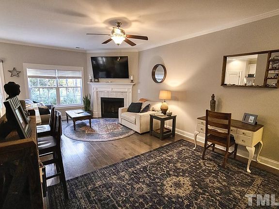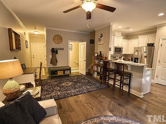 Cozy townhome in highly sought after neighborhood across from Ting Park, minutes away from dtwn Holly Springs' shopping and restaurants. Hardwoods first floor, gas range, granite kitchen counter tops, gas fireplace, nine foot ceilings and crown molding on first floor, ceiling fans in great room and master bedroom. Oversized finished garage. Built on sealed crawlspace. Located at the end of the street with a private wooded lot in back.