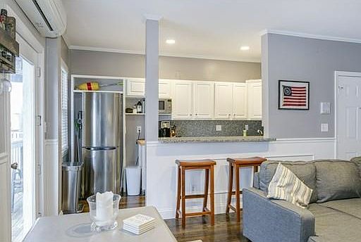 Beautiful one bedroom on the hot West side! Features sunny living/dining room with gleaming hardwood floors opening to wonderful granite and stainless steel kitchen perfect for entertaining. Lovely private deck in the rear. A great South Boston home in a pet-friendly building steps to the T and all the great neighborhood shops and restaurants.