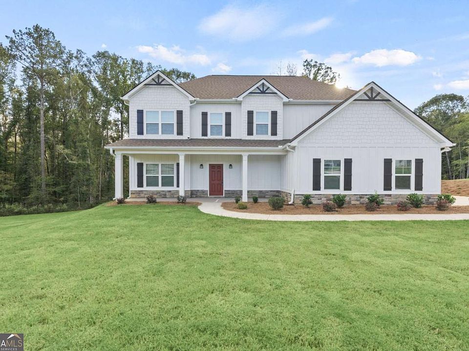 Built in Equity! Home Appraised at $593000. This beautiful New Construction is a fantastic 2 story home features four bedrooms, two full baths, one half bath, office, 3 car garage with an open floorplan with a foyer entrance leading to the large great room with fireplace, the chef's kitchen overlooks great room and features plenty of upgraded cabinets and quartz countertops, refrigerator, stovetop, wall oven, under counter task lighting, stainless steel appliances, large breakfast room leads out to a covered patio. There is also an office and half-bath on the first floor. Large storage area under the staircase. There are four bedrooms, two bathrooms; large master suite with large walk-in closet, garden tub, tile shower and a double sink vanity; this home has quartz counter tops in the master bathroom and granite in secondary bathrooms; tile floors in the laundry room. The home has LVP hardwood flooring throughout including all bedrooms (no carpet), oil rubbed bronze fixtures and hardware, exterior has Hardi Plank fiber cement siding with stone accents. Beautiful porch in the front of the home with a large covered back patio in the back of the home. The front and back yards are sodded. The Builder Incentive with one of our preferred lenders.