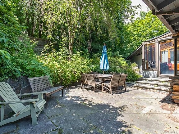 Gorgeous contemporary colonial seamlessly blended into a 1.16 acre natural surrounding. This one of a kind, light and bright, architecturally crafted, home has approximately 4908 square feet of living space and will transport you to a serene escape. The great open floor plan is perfect for both indoor and outdoor entertaining and has possibilities for multi-generational living options. Extensive recent renovations include; a new custom kitchen with granite countertops and high end appliances; a new roof; a new boiler; installation of solar panels (completely paid off with a current electric bill of $9.26/month) & extensive tree removal. Exceptional quality of construction includes vaulted ceilings with exposed beams, skylights, oak hardwood flooring, Anderson windows, solid wood interior door, luxurious baths with Italian tile and/or marble with a steam shower and sauna in the master bath. The main level features the new custom kitchen, dining room, bedroom, den, laundry room and 1.5 baths. The second floor contains a great room with vaulted ceilings and a brick fireplace, a spacious family room, fully glassed sunroom, an entertaining bar/kitchenette areas, 4 generously sized bedrooms and 3 additional full baths. The beautiful grounds include many unique plantings and gardens along with artfully designed walking paths. A Nature lovers paradise! This house is perfect as a primary residence or a relaxing weekend retreat! Convenient access to Route 15 and an easy NYC commute!