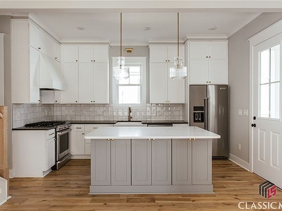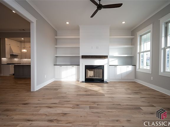 Welcome to this charming Trillium design, homing the sought-after Glenwood neighborhood near Five Points in Athens. As you enter the quaint foyer, you are greeted with with open living spaces separated by elegant cased openings. The living room boasts a gas fireplace flanked by custom built-ins, creating a cozy atmosphere. The roomy kitchen features a custom island with seating, perfect for casual dining. Enjoy the wraparound front porch, an ideal spot for sipping morning coffee. The dining area and den offer flexibility, easily adaptable to your lifestyle. The owner’s suite on the main floor is a retreat tucked away with a beautiful primary bath, frameless