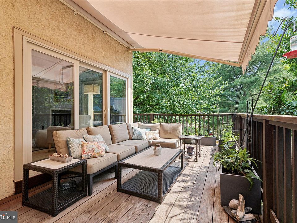 Welcome to your dream home in the desirable gated community of Breyer Woods in Elkins Park! As you enter the foyer, you will instantly notice the natural light throughout. On your right you have a cozy living room that would also be perfect for a home office. On your left is the stunning family room/dining room with dramatic vaulted ceilings, skylights, and a wood burning fireplace. Sliding doors lead out to a large wrap around deck, situated in a peaceful Pocono like setting with a self retracting awning that allows you to enjoy nature, even on the sunniest days. High end cabinets and stainless steel appliances in the updated eat in kitchen. A much sought after first floor master bedroom has walk in closets and new carpet(2024). Master bath has a whirlpool spa tub, separate shower, and double sinks. Powder room and and laundry room complete first floor. 2nd floor consists of bedroom 2 with a walk in closet and an extra closet for storage, bedroom 3 which also has two closets, and a full hall bath. A bonus area overlooking the living room is currently being used as a home office. The huge finished basement has endless possibilities. 2 car garage. Freshly painted interior(2024). Nothing to do but move your possessions in! Book your showing today!