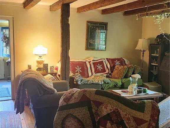 REDUCED! This 2 bedroom home with 2 bonus rooms on the second floor sits off the road for a beautiful country setting.  The sale includes 2 parcels for a TOTAL OF 7.7 acres. The inside boasts a cozy country feel with wood beams and woodstove in the living room. Outside find an inground pool, 2 car garage and big shed/chicken coop and pen.  The property is fenced. Nearby farm market, restaurants, and parks. Great commuter location- 3 miles to Rt 80.