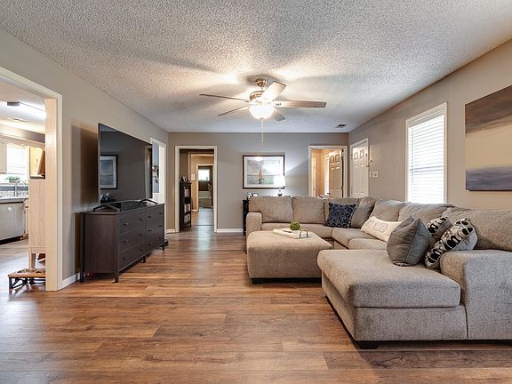 Fabulous Atoka 5BR/3BA home, some TLC needed - Spacious Great Room w/FP; Kitchen has granite, new appliances, lots of storage & large dining area; amazing sunroom-great for a home office or 2nd living space; split floorplan down; primary bed w/attached bath w/2 closets; upstairs: 2 more beds + bath (there is a closet big enough to be another bed); 20x30 shed w/power in a fenced backyard. New flooring; downstairs HVAC recently replaced. Lot extends to the neighbors fence on left so much space!